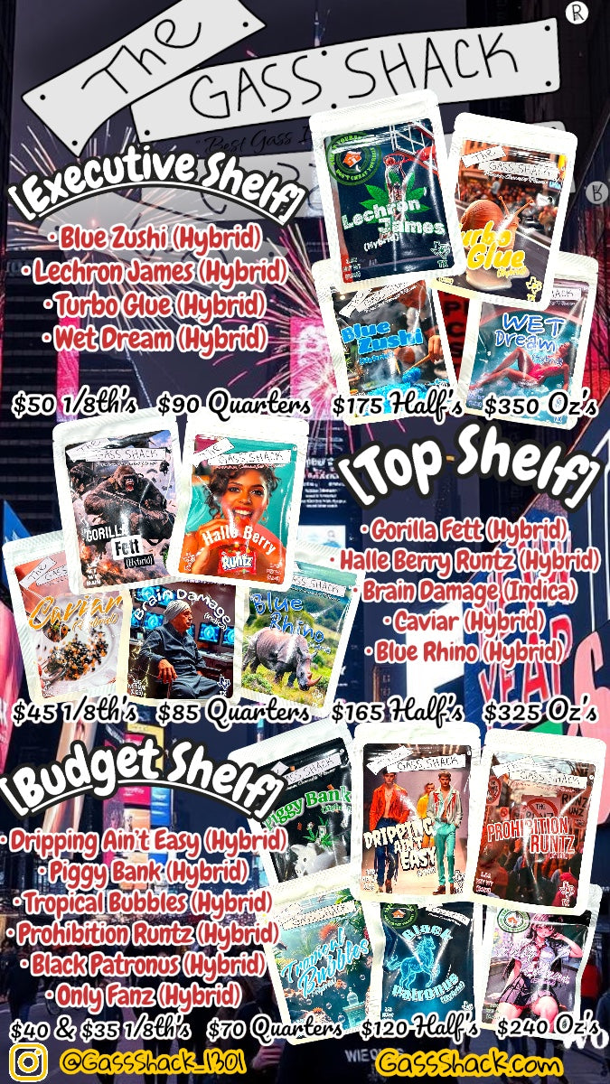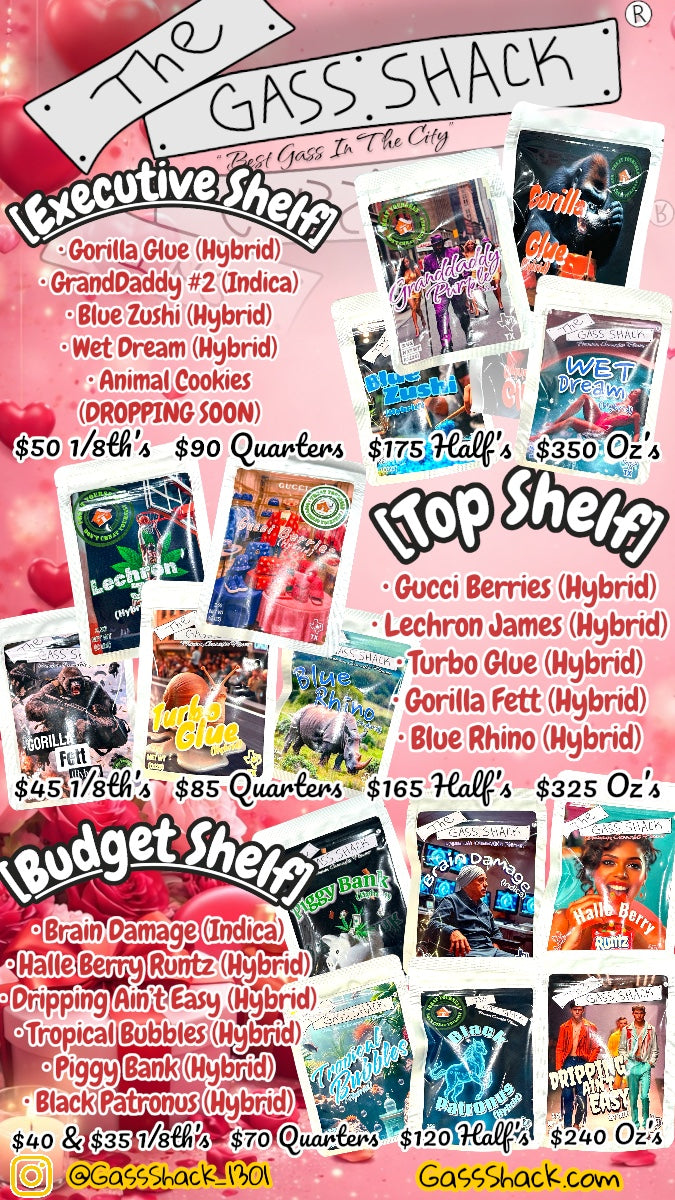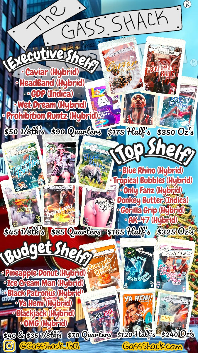 This Is a Legendary Strain Drop for The TRUE CONNOISSUER!! We Have Some Bad Ass Heavy Hitting Indica's, & Even Our Happy Medium Hybrids That We ALL Love!! Catering To Any Desired Palette from Pure Candy Gass, Smooth Cream, & Of Course Our GASS SHACK®️ Octane Strains!! (MAKE SURE TO CHECK OUT OUR PRIVATE RESERVE)