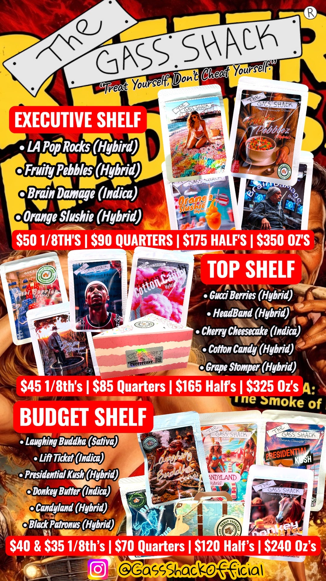 This Is a Legendary Strain Drop for The TRUE CONNOISSUER!! We Have Some Bad Ass Heavy Hitting Indica's, & Even Our Happy Medium Hybrids That We ALL Love!! Catering To Any Desired Palette from Pure Candy Gass, Smooth Cream, & Of Course Our GASS SHACK®️ Octane Strains!! (MAKE SURE TO CHECK OUT OUR PRIVATE RESERVE)